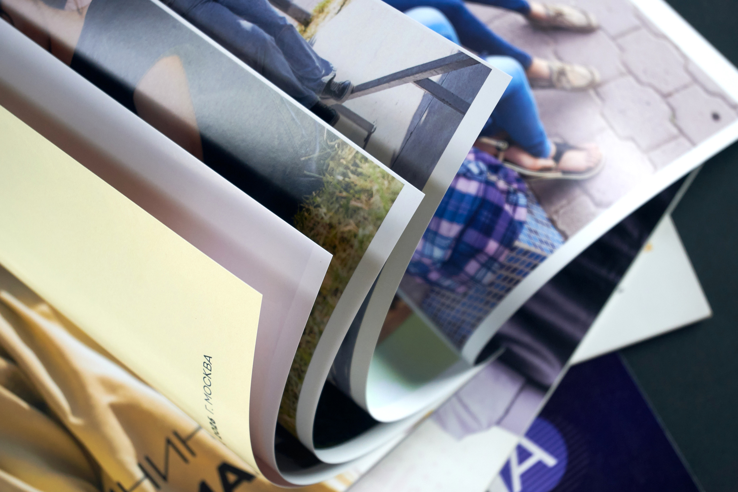 Печать обложек и разворотов производится на мелованной бумаге полиграфическим способом на профессиональных печатных машинах Ricoh С7200
